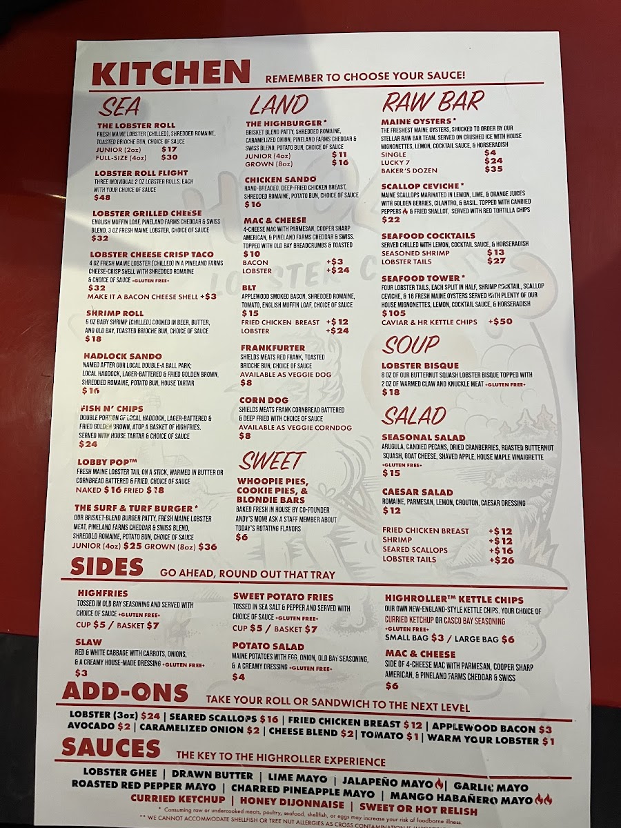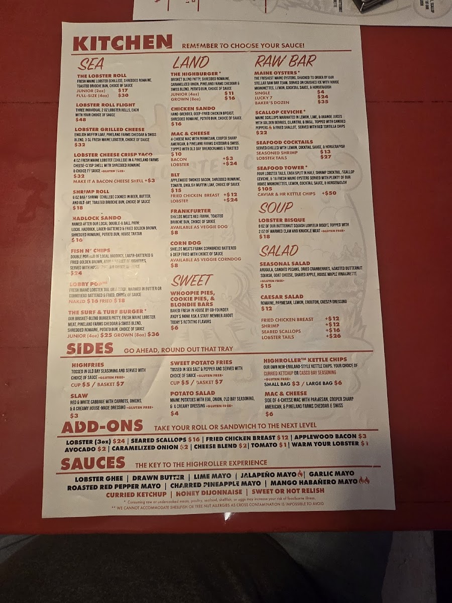 “ I tried Highroller for dinner (5pm), the entrance of the restaurant had a small line outside. The waiter said that there would be a wait of about 30 min or so for my party of 2 or the bar was open seating. We ended up getting 2 seats at the bar shortly after and quickly placed our food and drink orders. Had the Lobster grilled cheese and the “Lobby pop”. The Lobster Grilled cheese was delicious and had a decent amount of lobster on it with both claw and tail meat. They have a small list of different dipping sauces, the garlic mayo was my favorite. As for the “ lobby pop” it was somewhat disappointing. The breading was okay and the fish didn’t have much flavor. Given the wide menu variety I would opt for something else in the future. ”